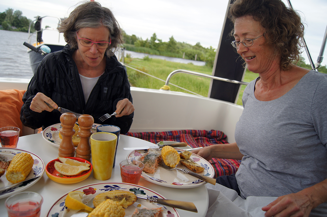 Dinner was a delight: salmon, potatoes and corn from the grill.