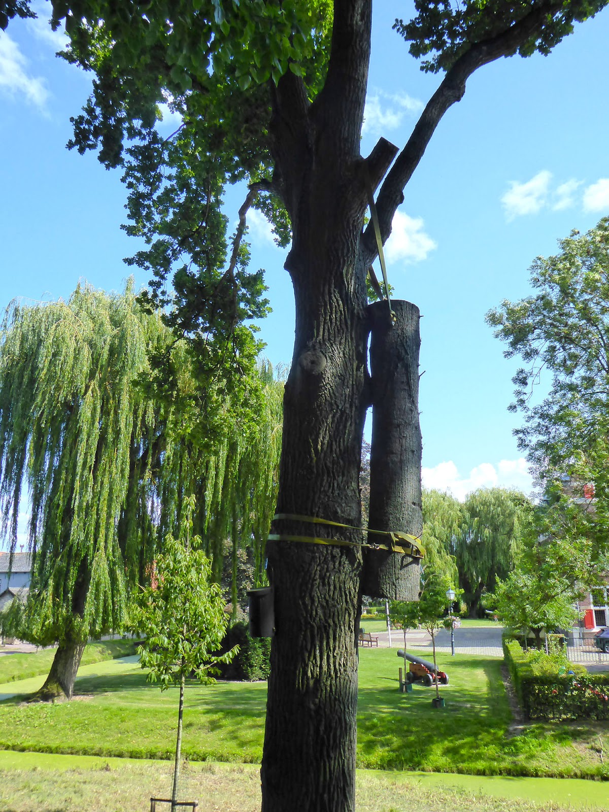Scaling a mast to install a wind indicator on a very breezy day, a three-person job and the woman was the lightest among them, so she rode to the top.